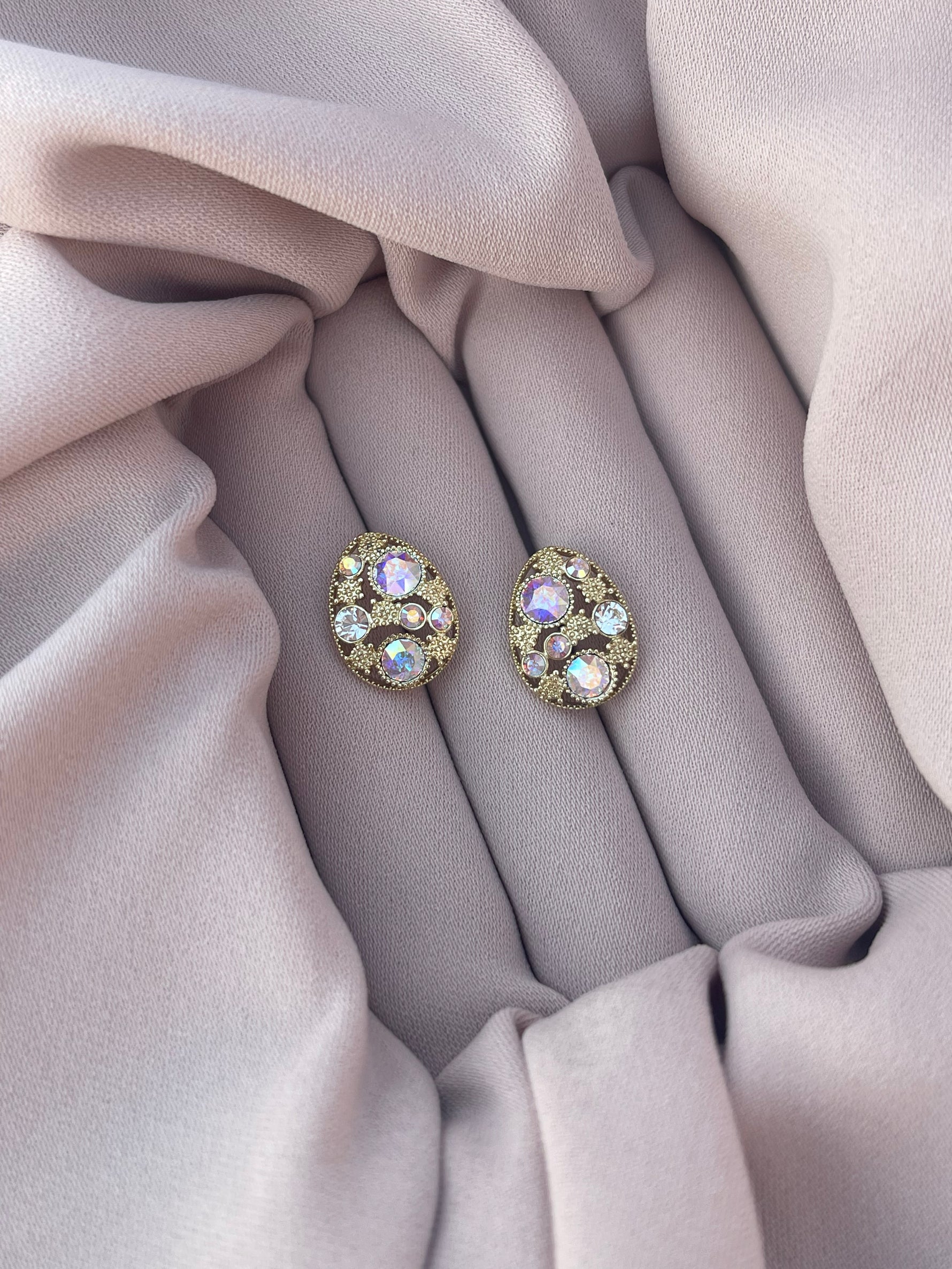 Pendientes en Oro Laminado 14K con brillitos multicolor, llenos de estilo y perfectos para destacar en cualquier ocasión.